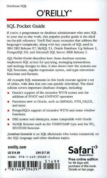 Read SQL Pocket Guide A Guide to SQL Usage Reader online is a convenient and frugal way to read SQL Pocket Guide A Guide to SQL Usage you love right from the comfort of your own home. Yes, there sites where you can get Reader "for free" but the ones listed below are clean from viruses and completely legal to use.
